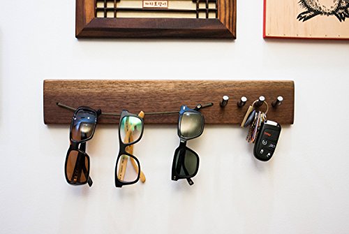 Handmade solid walnut sunglasses & keys wall organizer (1-pack)