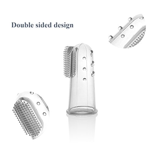 Double Sided of Finger Toothbrush — The soft and resilient bristles provide a gentle and massaging feel, the delicate massage bumps allow for cleaning the tongue. Our product design also suits adult women fingers tightly