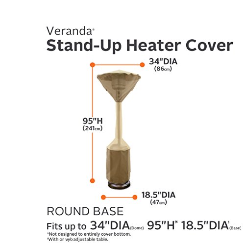 Classic Accessories® Veranda stand-up heater cover. Gardelle™ fabric system features an elegant top with a water-repellent PVC undercoating . Protective splash-guard base.