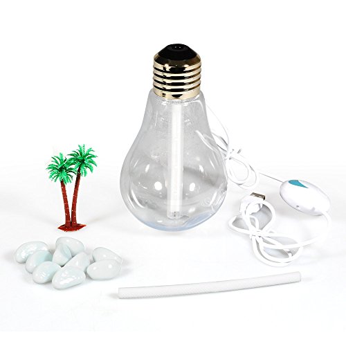 - Unique design - This humidifier have 3Modes,You can freely shift from mist to mist & light .With stone and simulation plants ,bring you beauty tropical scenery feeling.Also she can display with different pose like vertical display, tilt display.