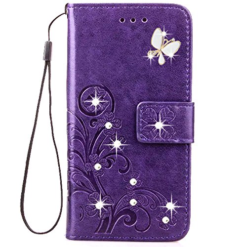 원본상품명: LG Stylo 3財布型ケ?ス、Haotp 3dハンドメイドキラキラ光るクリスタルラインスト?ンバタフライフロ?ラルLucky花エンボスPUフリップスタンドカ?ドスロットホルダ?レザ?ケ?スfor