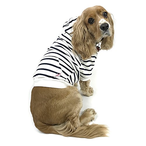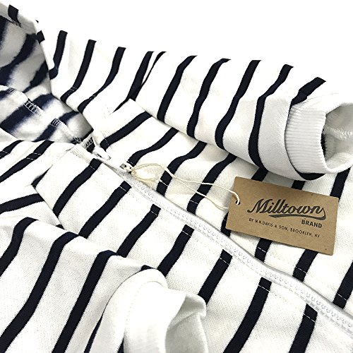 -. Title : Milltown Dog Hoodie, white w/ navy stripe