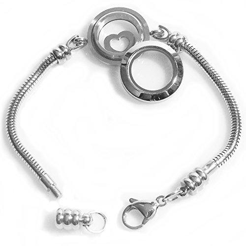 -. Title : Timeline Treasures Floating Locket Charm Bracelets For Women, Stainless Steel, Fits , 7.5 Inch