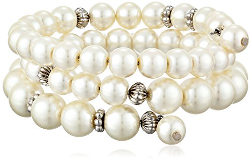 -. Title : 1928 Jewelry "Pearl Essentials" Silver-Tone White and Crystal Coil Wrap Bracelet