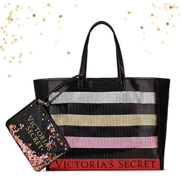 VICTORIA'S SECRET (ヴィクトリアシークレット) バッグ ビクトリア トートバッグ 大きめ ブラック スパンコール ボーダー ポーチ サイズ (約)バッグ 縦:28m×横:56cm×マチ:28cm ポーチ 縦:15cm×横:22cm スパンコール付きトートバッグ&ポーチセットが入荷! 軽くて持ちやすいコットンキャンバスにキラキラ可愛いスパンコールがとっても華やかなデザイン。 ポーチはスパンコールが閉じ込められていて、キラキラしてとってもキュート!ヴィクシーらしいアイテムです。※VS商品の金属は大変柔らかく傷が付きやすい金属の為、店頭展示品で無くても製造過程や搬入によりできた傷などが稀に見られる場合がございます。VSでは不良品扱いにはなりませんので、予めご了承頂きご注文お願い致します。