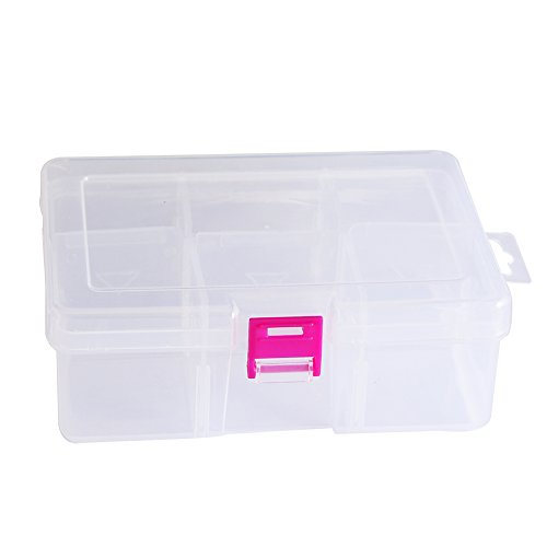 Plastic Jewelry fishing hook Small Accessories Organizer (6 Adjustable clearly Storage box ( Red button))