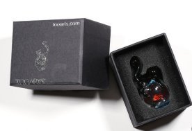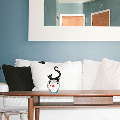 Tooarts Cat and Goldfish Sculpture Glass Ornament Cat Figurine Hand Blown Black & Red