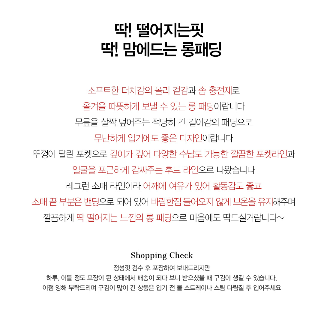 | 퍼탈부착(Detachable fur) | 없음 |