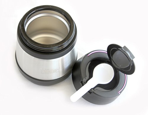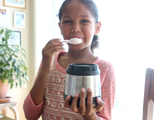 Double wall stainless steel BPA free FOOD JAR with two folding spoon. The double wall design allows this food jar to stay cool to the touch with warm or cold foods