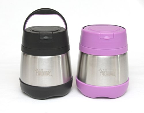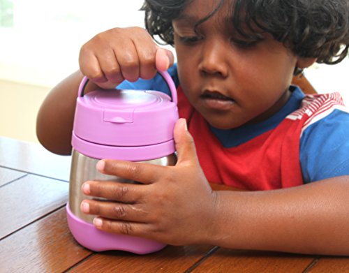 Vacuum Insulated Stainless Steel 12oz Thermos Food Jar with Spoon and carry handle. Black / Purple (Black)