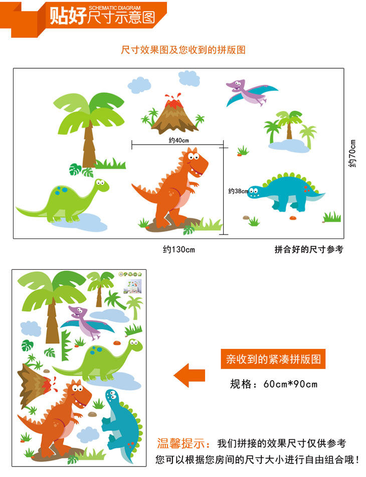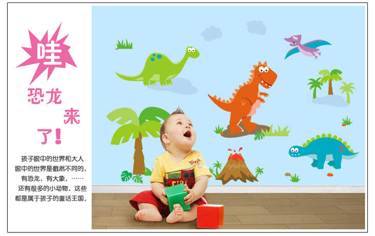 幼儿园教室装饰儿童房卧室背景布置画墙贴纸 恐龙乐园