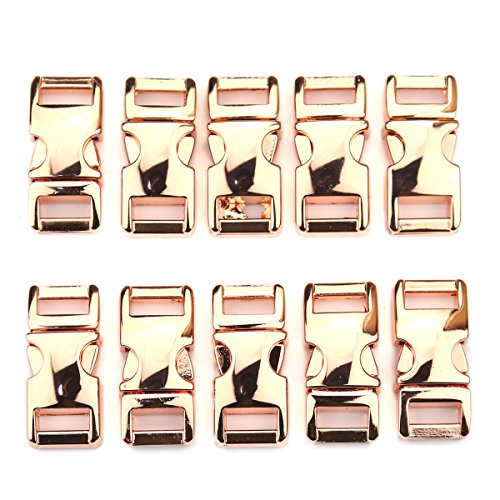 Blue Elf 10 PCS 3/8 inch (10mm) Flat Champagne Color Metal (Zinc Alloy) Side Release Buckles Shiny Finish For Paracord Bracelets with free Cable Organizer