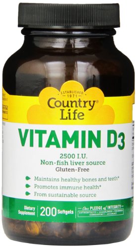 -. Binding : Health and Beauty -. Brand : Country Life -. EAN : 0015794058052 -. Feature : Supports the nervous system / An essential vitamin / Soft gels are 100% bovine gelatin, BSE-free -. Label : Country Life -. Manufacturer : Country Life -. NumberOfItems : 1 -. PackageQuantity : 1 -. ProductGroup : Pantry -. ProductTypeName : HEALTH_PERSONAL_CARE -. Publisher : Country Life -. Studio : Country Life -. Title : Country Life Vitamin D3 2500 IU Soft Gels, Larger, 200 sg, 200 Count -. UPC : 015794058052