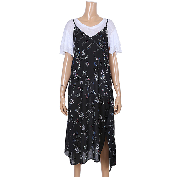잔잔한 플라워 패턴의 뷔스티에 원피스입니다. 어깨끈으로 길이 조절이 가능한 상품으로 다양하게 연출하시기 좋습니다.