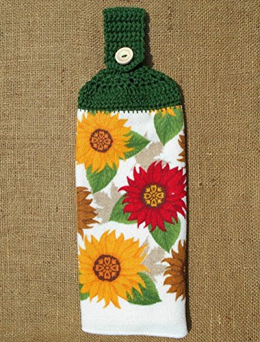 -. Title : Fall Sunflower Microfiber Hanging Dish Towel Double Sided with Crochet Top Autumn Kitchen Decor