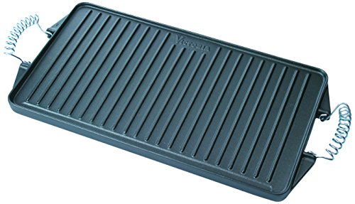 LARGE REVERSIBLE CAST IRON RECTANGULAR GRIDDLE 17 X 9.5 INCHES PRE-SEASONED NONSTICK WITH STAY-COOL HANDLES - VICTORIA