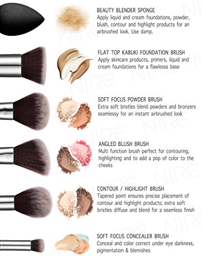 Pro-level design: All Niré Beauty brushes are made with ergonomic wooden brush handles and lightweight ferrules in rose golden or silver. Ranging in size from handle to ferrule depending on their function, you have the freedom to use the entire handle for sweeping blending techniques or grip closer to the ferrule for more precise application.