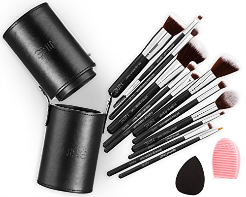 EVERYTHING YOU NEED: 12 full sized brushes, PRO foundation blending sponge, brush cleaning tool, AND a pro brush holder that opens into two brush cups. Designed by professional makeup artists to help you create ALL those beautiful looks today!