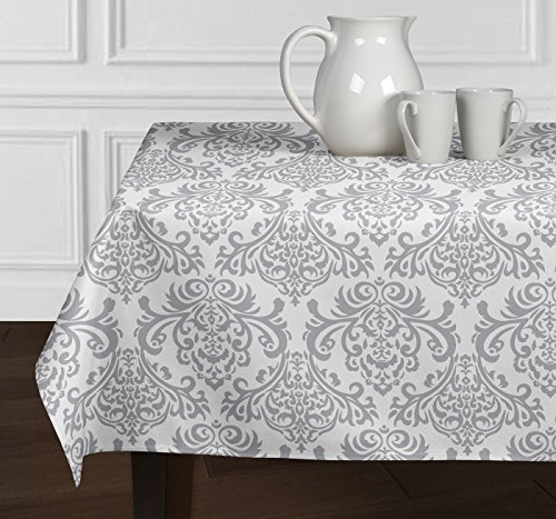-. Feature : Grey & White Elegant Damask P.R.Int / 100% Cotton - Hemmed Edges / Tablecloth has a seamless one piece design / 60" x 102" Rectangle Fits Standard 6' Dining table that seats 8-10 people, / Matching table runners, napkins, placemats and toppers are also available.