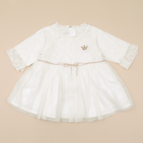 - 아이보리색상의 고급스러운 자수원단으로 포인트를 주어 여성스럽게 입히실 수 있는 드레스입니다.