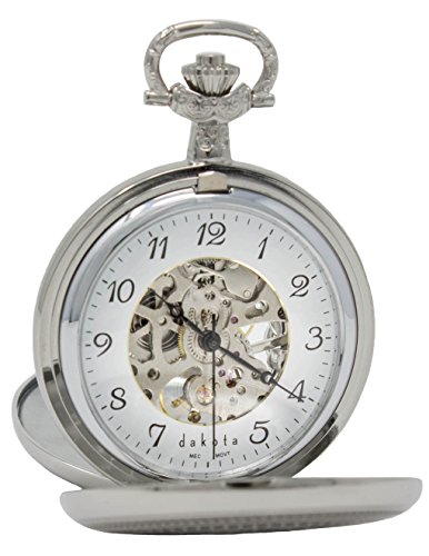 This classic pocket watch with peak through dial is a great men's gift item for your father, grandfather, brother, husband and groomsman. The pocket watch has a peak through dial so all the gears can be visible from the front or back. It's designed to allow the back cover and front cover to pop out creating a stand for the pocket watch. Perfect to display on a desk or shelf while not being worn. A great gift item both the back cover and the front cover have a space dedicated to personalization through engraving. The space for engraving this item is h:11mm x w: 7mm and can easily fit a date, monogram or short message. The pocket watch ships in a reusable leather box that has two compartments to store jewelry, electronics and other items while traveling. This is a mechanical watch that needs to be work or twisted when first opened. It does not use a watch battery so you never need to worry about replacements. This watch is brought to you by Dakota watch company. The Dakota watch company has been dedicated to producing high quality timepieces since 1945. From over seventy years of experience, we have learned that our customers want a watch that incorporates cutting edge design, the best quality components, a substantial guarantee and, if necessary, quick and easy service behind the sale. Under the guidance of the cooper family, our design team has developed unmatched expertise in creative watch production. For over seven decades we have designed thousands of timepieces with a strong emphasis on craftsmanship. Our styles are unique and expressive of today's desire for multipurpose use. From rugged sports to elegant dress to digital functions, we have whatever you are looking for... And a little something extra.Feature