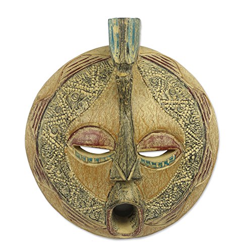 NOVICA Decorative Wood Mask, Yellow 'A True Love'