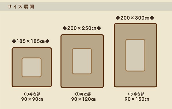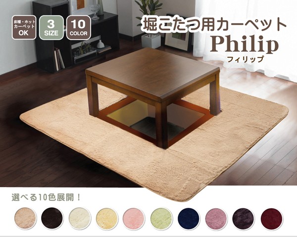 【商品名】堀りごたつ用マット ラグマット カーペット 3畳 無地 『Hフィリップ堀』 ベージュ 約200×250cm(くり抜き部90×120cm) ホットカーペット対応