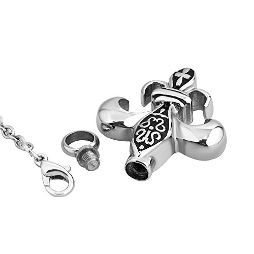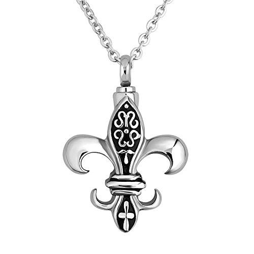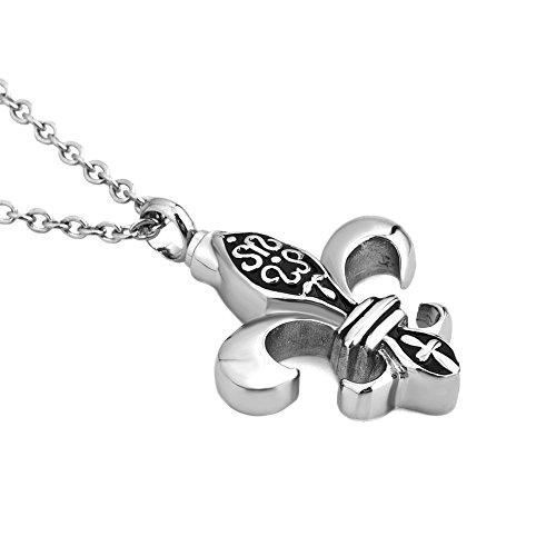 LuckyJewelry Cremation Urn Necklace For Ashes Fleur De Lis Pendant Holder Memorial Keepsake Funnel