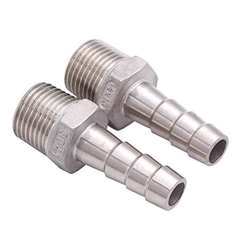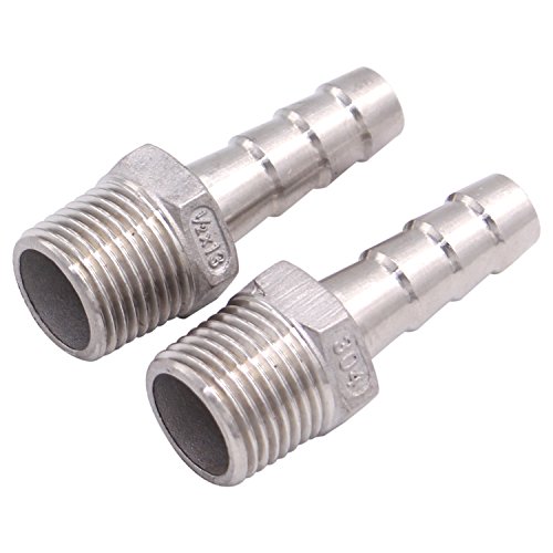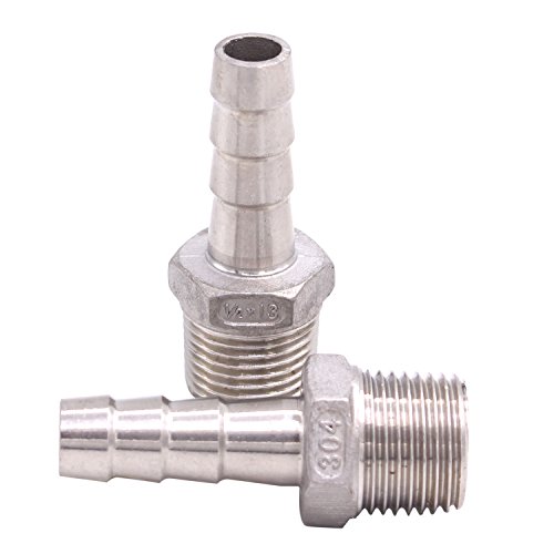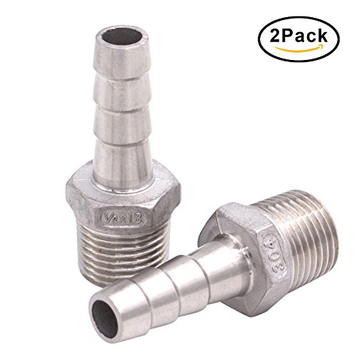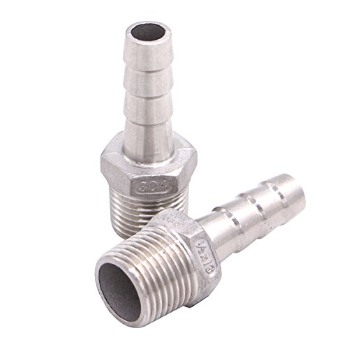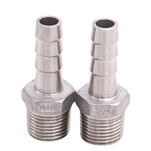 Dernord 1/2" Barbed Hose x 1/2" NPT Male - Home Brew Fitting 304 Stainless Steel Pack of 2