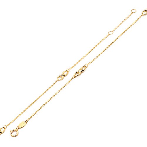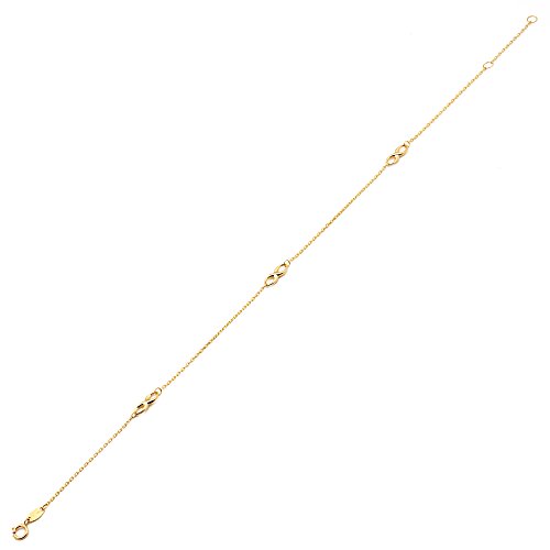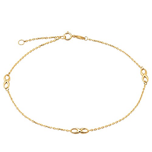-. Title : LoveBling 10K Yellow Gold .50mm Diamond Cut Rolo Chain with 3 Infinity pendants Anklet Adjustable 9" to 10"