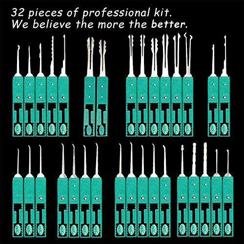 32 piceces of kits/tools & 6 pieces of tension wrench in one package. Suitable for either professional or beginner/trainer. Most various picking set so far.