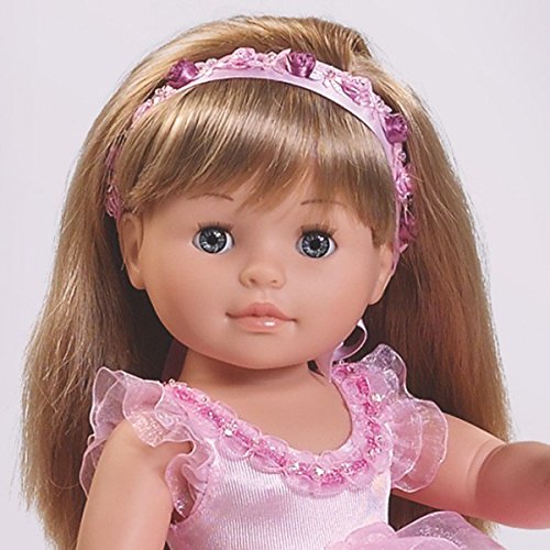 Soy Tu Ballerina has sparklng blue eyes that open and close. Her lovely long blonde hair is perfect for combing, brushing, and styling.