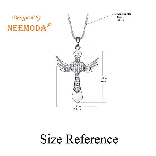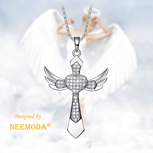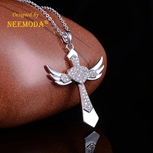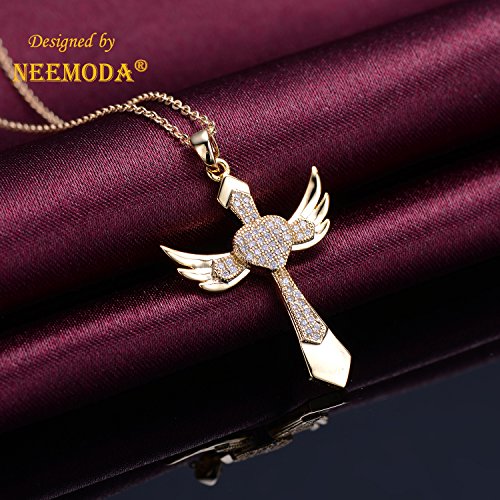 -. Title : NEEMODA "Chivalry" Angel Wings Cross Pendant Necklace Hand-inlaid AAA Cubic Zirconia Triple Gold Plated