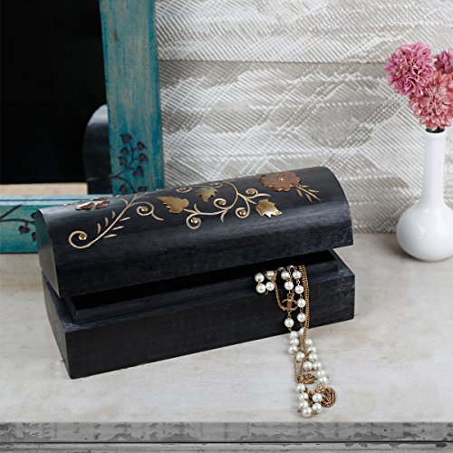 -. Binding : Kitchen -. Brand : Store Indya -. Color : Brown -. EAN : 8907385987266 -. Feature : Dimensions : Length - 10 inches x Width - 5 inches / Hand carved out of durable Mango wood which is known for its rich, natural lustre and natural grains. / Its surface is painted in black with delicate floral design etched on its surface. / This box provides you with sufficient storage space for your jewelry, trinkets, charms, cufflinks etc. / Handmade by skilled artisans from Saharanpur - India's largest hub for high quality wooden artifacts. -. IsAutographed : 0 -. Label : Store Indya -. Manufacturer : Store Indya -. ProductGroup : Home -. ProductTypeName : HOME -. Publisher : Store Indya -. Studio : Store Indya -. Title : Black Wooden Watch Necklace Bracelet Holder Storage Box Multi-utility Keepsake Long Jewelry Makeup Brushes Accessories Cutlery Pencil Incense Stick Box Organizer