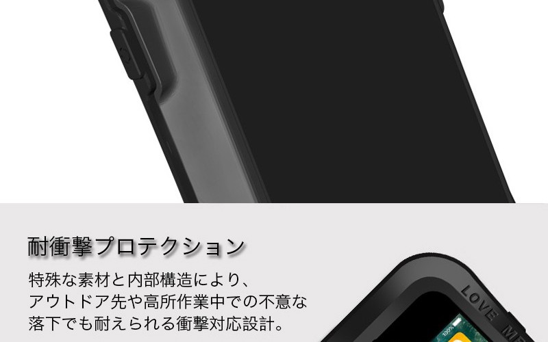 強い衝撃、落下、スクリーンのダメージ、そして水やほこりから守ります。
