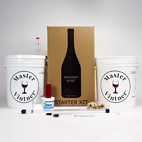Kit Includes Master VintnerTM 7.9 Gallon Fermenting Bucket x2 Drilled Lid for Fermenting Buckets Fermenter's Favorite® Rack Magic® Siphon Fermenter's Favorite® Bottle Filler with Tubing Triple Scale Hydrometer Master VintnerTM Mini Corker and Corks One Step - 8 oz. Sodium Metabisulfite - 50g Weekday Wine Recipe Kit : Chardonnay or Cabernet 0