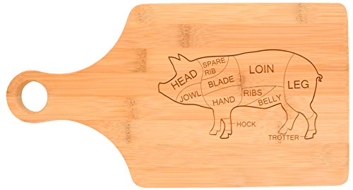 Pork Butcher Cuts Kitchen Décor Barbecue BBQ Pig Bacon Paddle Shaped Bamboo Cutting Board Bamboo