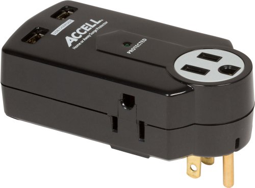 Accell 3-Outlet Travel Surge Protector with 2x USB Charging Ports and Folding Plug - Black, 612...