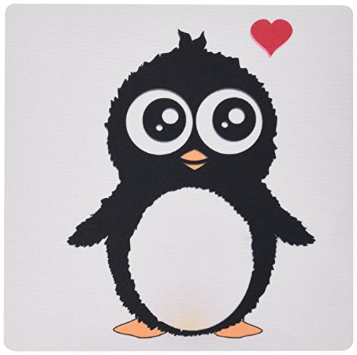 3dRose LLC 8 x 8 x 0.25 Inches Mouse Pad, Cute Penguin with Love Heart Black And White Cartoon Sweet Kawaii Adorable Baby Animal On White (mp_113121_1)