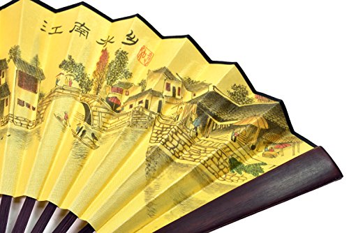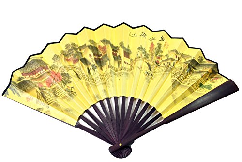 Handmade Bamboo Silk Folding fan Chinese Gonlan style,Chinese Hand Painted Design Silk Folding Fan 19 inch (gonlan style water town)