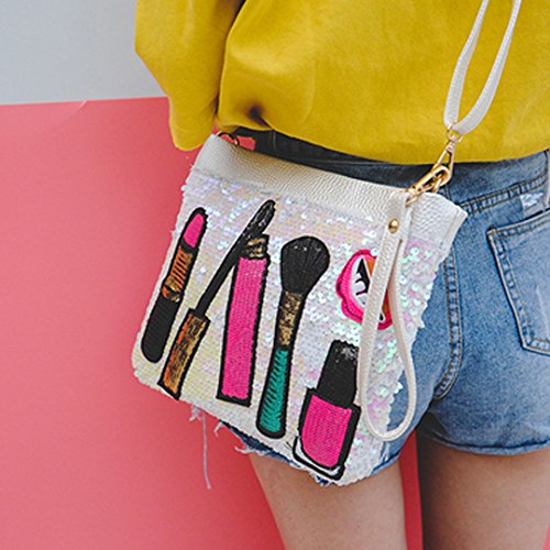 Ofila Women's Dazzling Sequins Clutch Bag Purse Zipper Shoulder Cross Body Bag Handbag