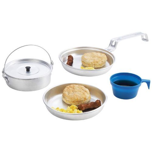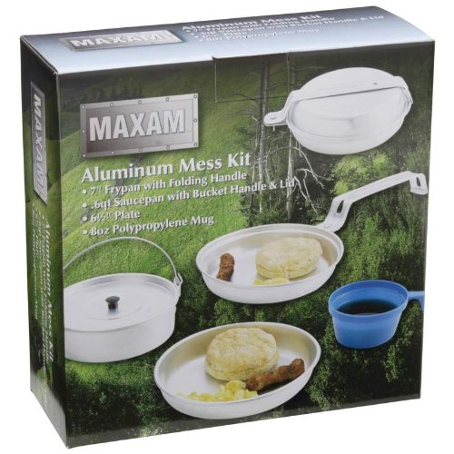 Studio : Maxam Publisher : Maxam Product Description This self-contained mess kit is the perfect travel size for outdoor trips. When opened, it provides all the tools needed to prepare and enjoy your own mini campfire feast. Features 7" frypan with folding handle; .6qt saucepan with bucket style handle and lid; 6-1/2" plate; and 8oz polypropylene mug. Gift boxed. 0