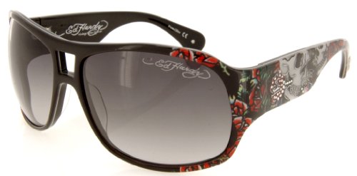 The Ed Hardy Brie Sunglasses is a beautiful fashionable sunglasses by Ed Hardy. The sunglasses features a light weight Plastic Full frame with excellent abrasion resistance, UV400 Protection, Original Ed hardy Skull graphic tattoo design on temples with rhinestone detail. comes with original embroidered artistic case and Signature cloth.Feature