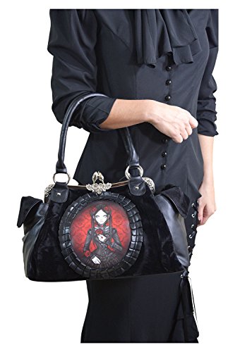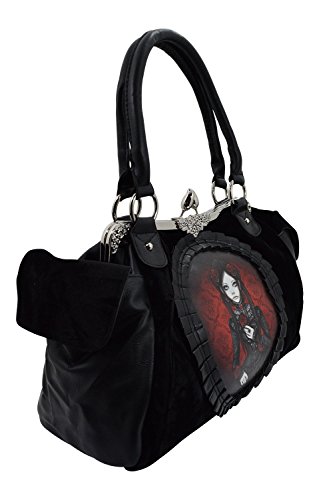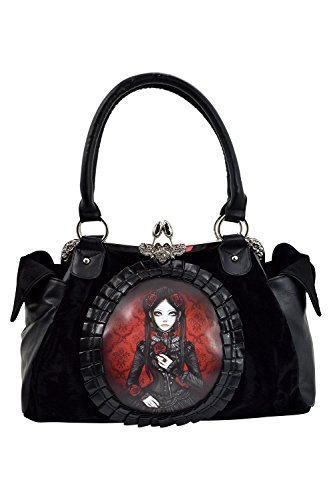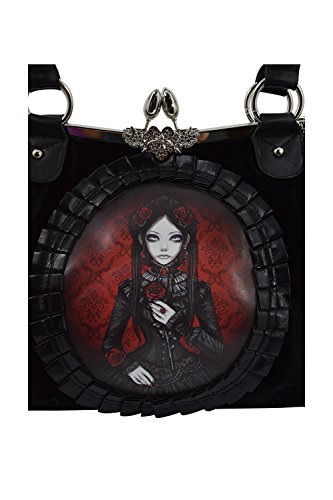 Restyle Gothic Lolita Black Velvet Red Doll Cameo Kiss Lock Vintage Style Handbag