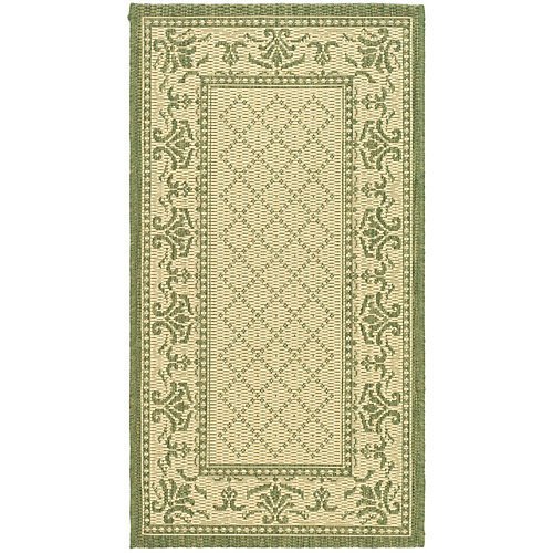 Safavieh's Courtyard Collection is inspired by timeless designs crafted with the softest polypropylene available. This rug is crafted using a power-loomed construction and features a main accent color of olive. Perfect for any backyard, patio, deck or poolside, this rug will instantly turn your outdoor area into a resort-style entertaining space.