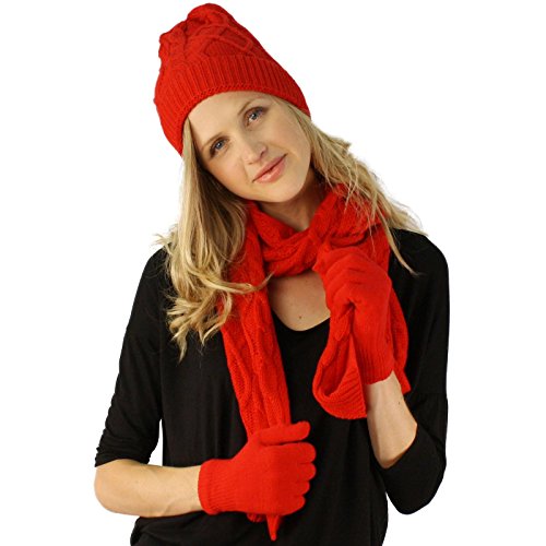 -. Title : Ladies 3pc Winter Soft Cable Knit Beanie Skull Hat Long Scarf Gloves Set