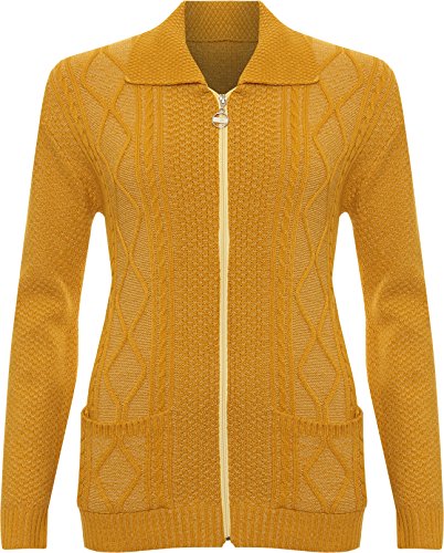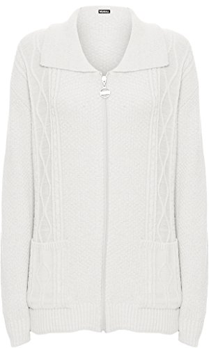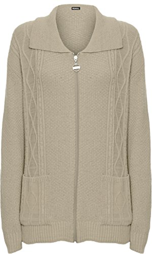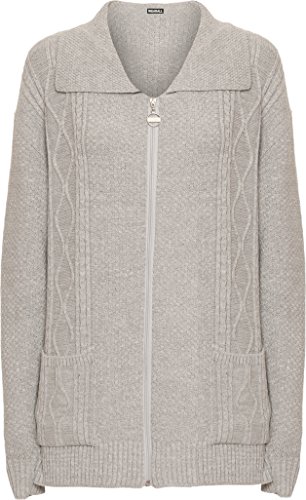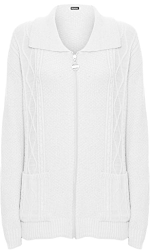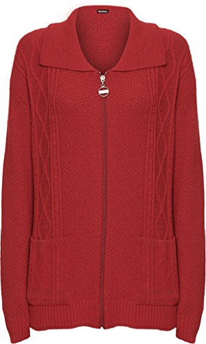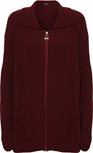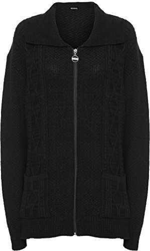 WearAll Women's Plus Knitted Collar Long Sleeve Pocket Zip Top Ladies Cardigan