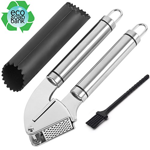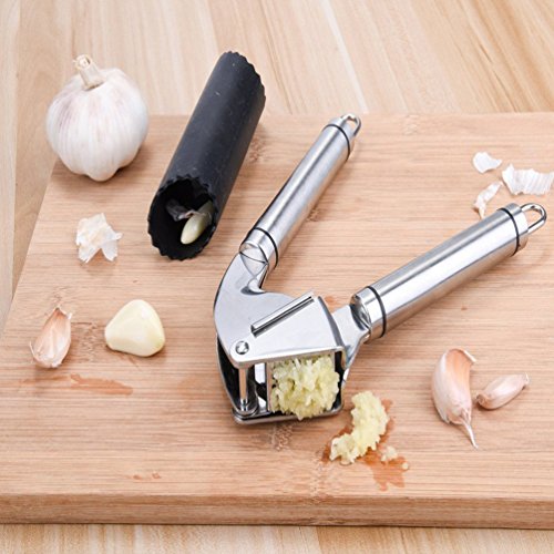 Garlic Press Stainless Steel Ginger Peeler Mincer Chopper Includes Silicone Peeler and Cleaning Brush