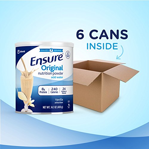 From the #1 doctor-recommended brand, Ensure Original Nutrition Powder provides complete and balanced nutrition. The convenient powder form makes it easy to mix with your favorite foods and water, and it's easy to store. Each serving has 8 grams of protein and 24 essential vitamins and minerals. Survey of 321 independent-living adults aged 50-80 years old, who reported a lack of energy or appetite, added 1-2 servings of Ensure Original daily to their regular diet. Participants self-reported improvements in strength, energy, and activity.Feature