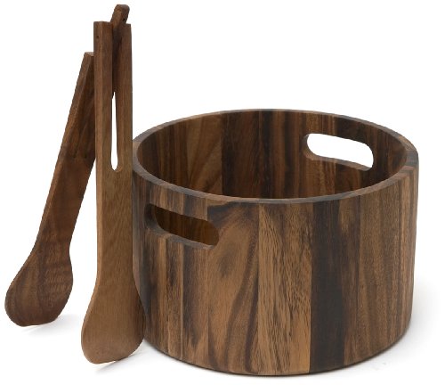 Woodard & Charles Acacia Woodard Salad Bowl and Tong Set, 10-1/4-Inch